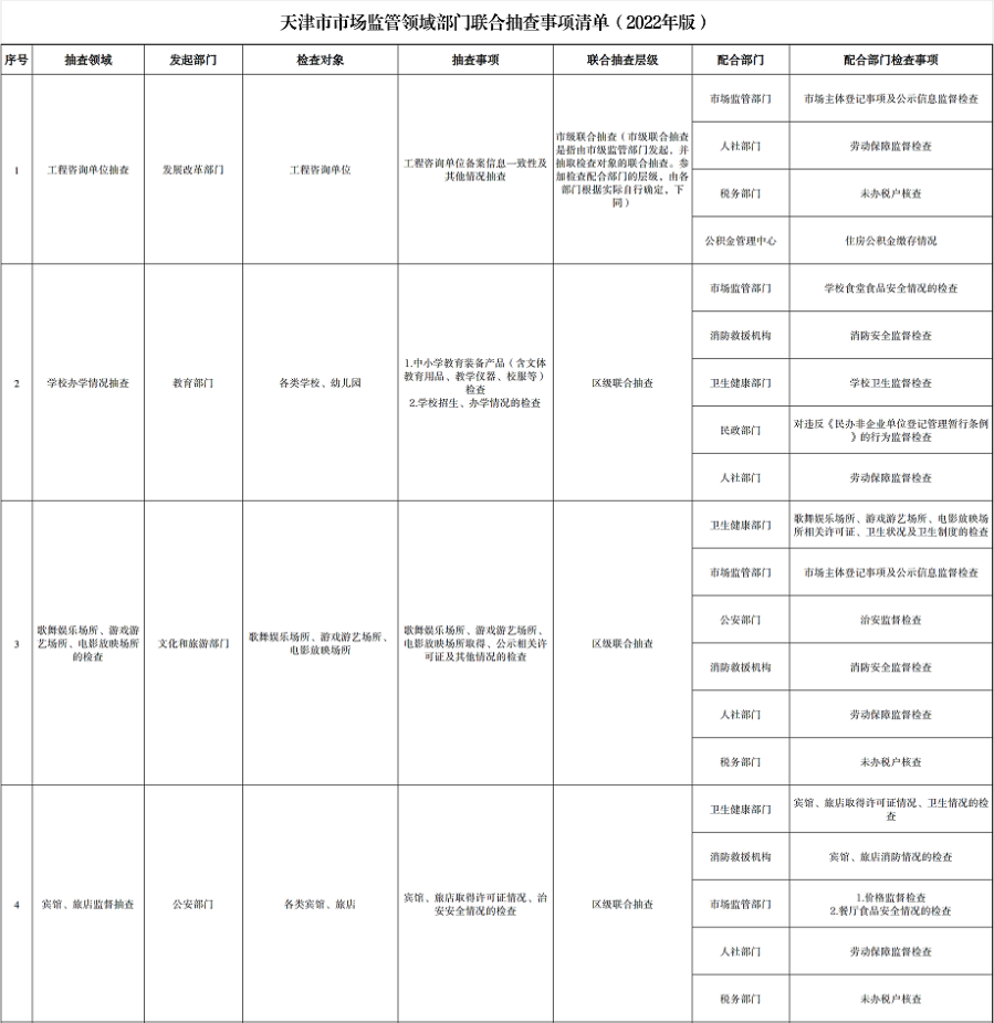 《天津市AG真人领域部门联合抽查事项清单(2022年版)》发布公告