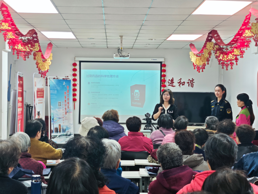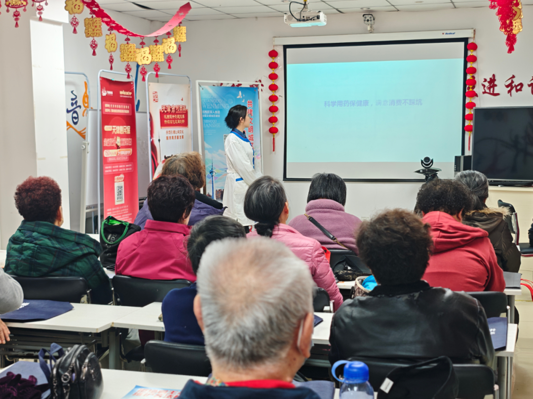 聚焦民生服务,构建科普宣传“连心桥”:在谊城公寓社区“3·15国际消费者权益日”宣传活动现场,围绕居民关心的安全用药用械用妆问题,讲解合理用药常识及常见误区。特邀天士力药房执业药师现场授课,重点普及安全用药知识,同步开展家庭过期药品回收专项科普,引导居民规范处置过期药品,将安全用药知识送到群众家门口。