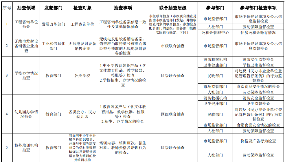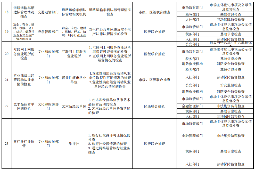 天津市AG真人领域部门联合抽查事项清单(2023年版)